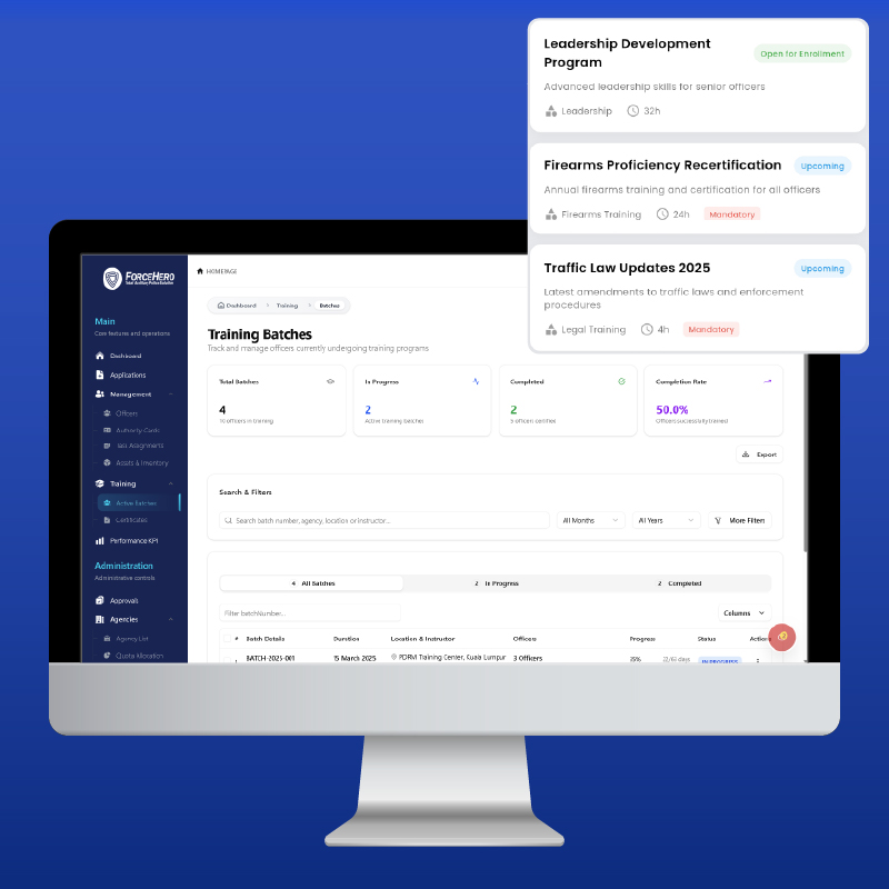Manage training batches and track the progress of your officers as they earn new certifications.