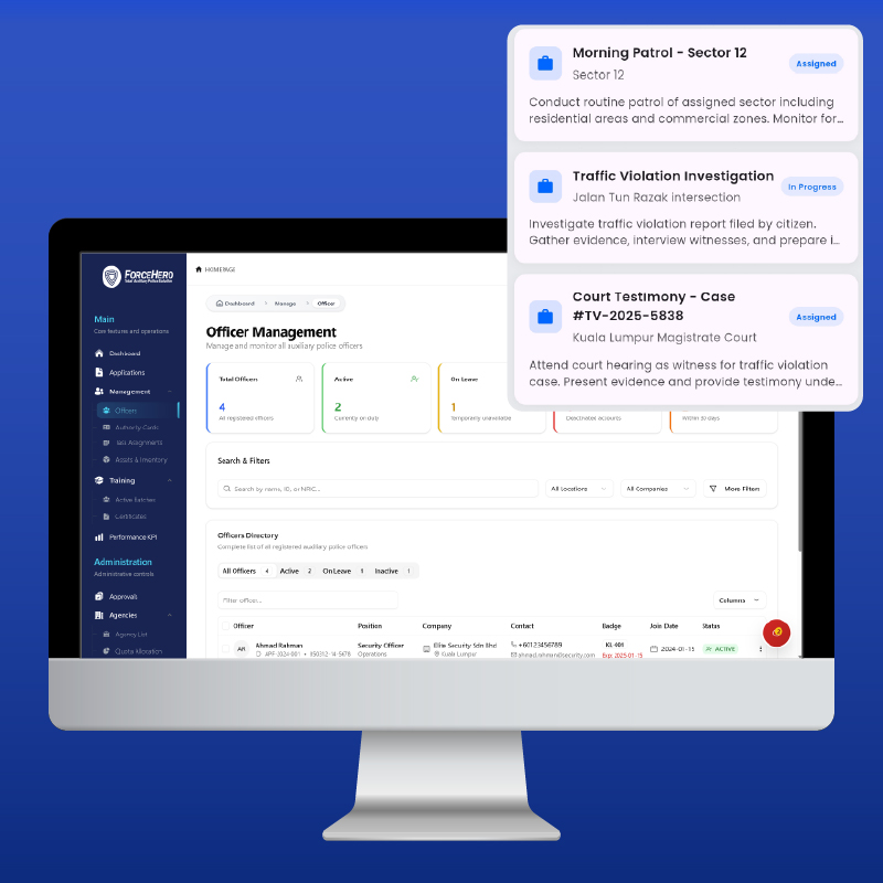 Authority Card Management Track the status and expiry of all officer credentials to ensure full compliance.